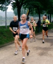 Na een paar van dergelijke trainingsloopjes vindt Steef dat Jon het verder maar zelf moet doen. "Achteraf bleek dat hij daar helemaal geen vertrouwen in had," zegt Jon grinnikend. Steef zou geen gelijk krijgen. Jon blijft trouw het Woolderesrondje lopen en houdt het al snel veel langer vol dan vier minuten. Het wordt tijd voor een eerste trimloopje. Van Steef mag Jon pas meedoen aan een 5 kilometer-loopje wanneer hij binnen de 25 minuten kan blijven. Jon herinnert zich: "Het werd natuurlijk 24:48, zo zat ik wel in elkaar. En dat ik kapot over de finish kwam, ach, dat hoorde erbij, dat deed iedereen in die tijd."